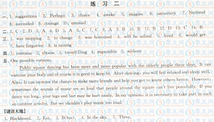 初中九年級(jí)寒假學(xué)習(xí)生活英語(yǔ)練習(xí)二答案