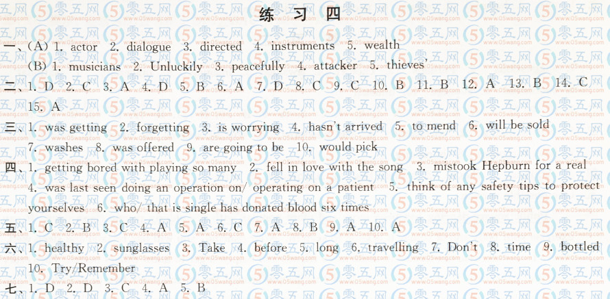 初中九年級(jí)寒假學(xué)習(xí)生活英語(yǔ)練習(xí)四答案