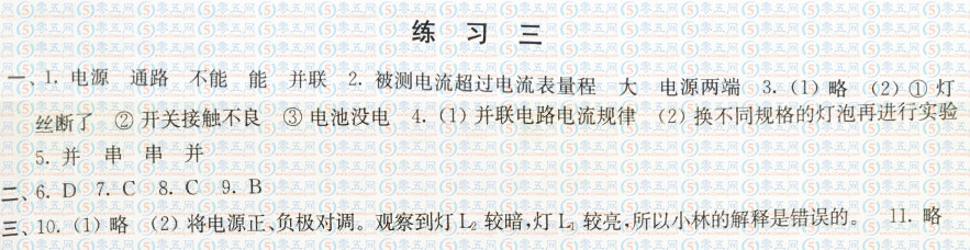 初中九年級寒假學(xué)習(xí)生活物理練習(xí)三答案