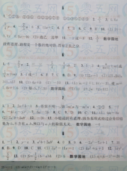 初中七年級假日樂園快樂寒假數(shù)學(xué)答案5.6.7.8