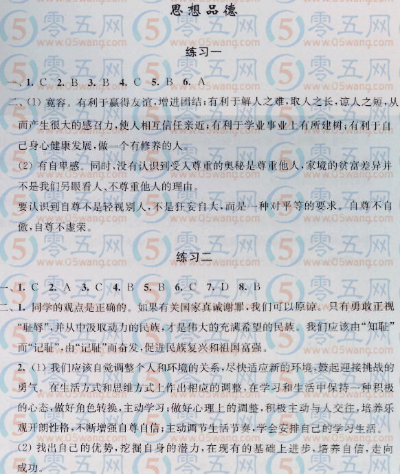 七年級學(xué)習(xí)探究寒假學(xué)習(xí)答案思想品德1.2