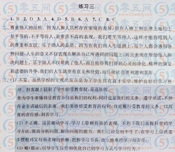 七年級學(xué)習(xí)探究寒假學(xué)習(xí)答案思想品德3