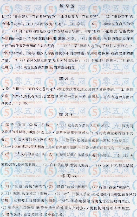 八年級(jí)學(xué)習(xí)探究寒假學(xué)習(xí)答案語(yǔ)文5.6.7.8