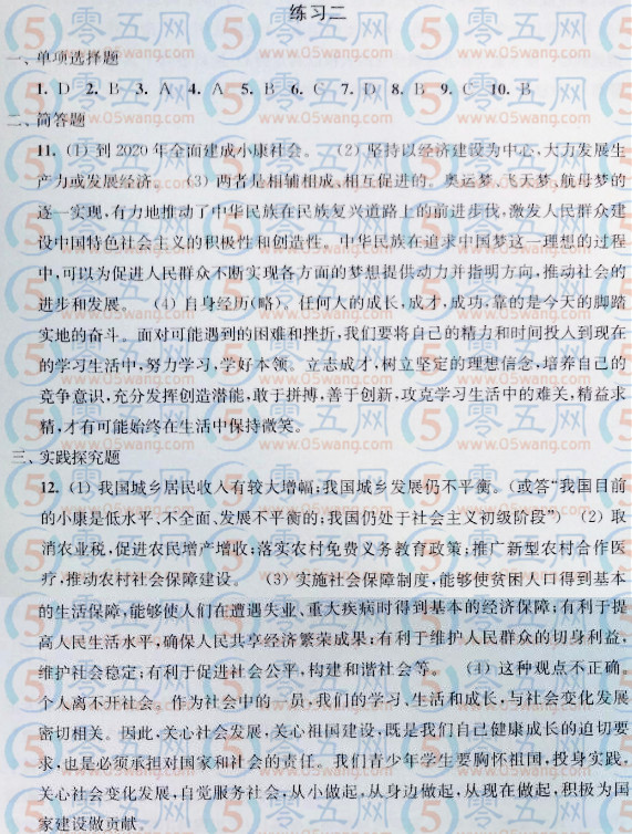 九年級(jí)學(xué)習(xí)探究寒假學(xué)習(xí)答案思想品德2