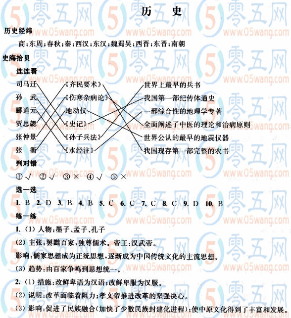 七年級愉快的寒假答案歷史