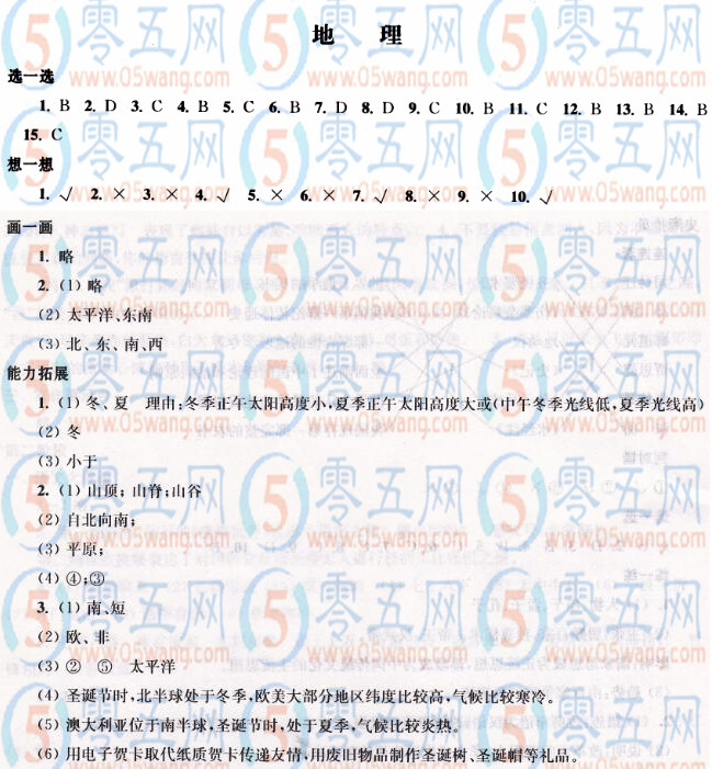 七年級愉快的寒假答案地理