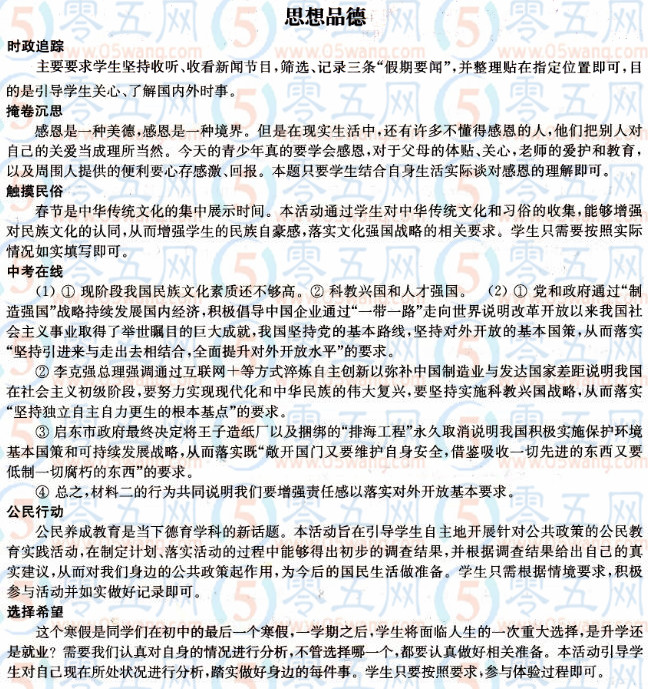 九年級(jí)愉快的寒假答案思想品德