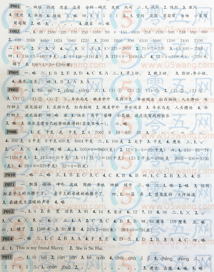 三年級(jí)快樂(lè)過(guò)寒假答案1—15頁(yè)