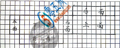 下面是一個(gè)長(zhǎng)方形的前面、左面和下面的展開(kāi)圖,畫(huà)出展開(kāi)圖的另外三個(gè)面,并標(biāo)出每個(gè)面是長(zhǎng)方形的什么面。