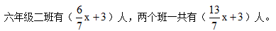 六年級一班有x人,六年級二班的人數(shù)比一班的6/7 多3人。六年級二班有( )人,兩個班一共有( )人。