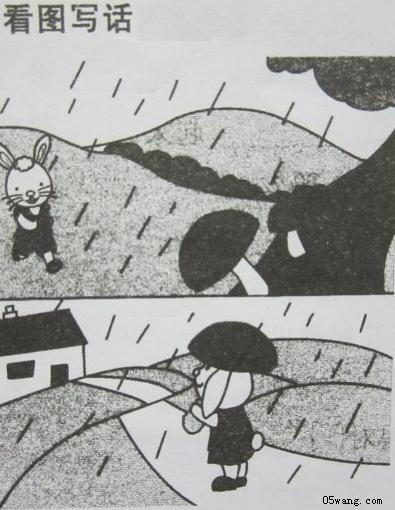 突然,天上烏云密布,沒過一會兒,下起了傾盆大雨。小兔趕緊邁開大步,跑到一棵大樹下去躲雨。它看見大樹下長著許多大大的蘑菇,想出辦法來了。