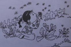 發(fā)現(xiàn)草地上長著一些蒲公英。紅紅最喜歡蒲公英了,她在地上跪下來,兩只手輕輕地折下一根蒲公英,仰起頭朝著蒲公英深深地吹出一口氣。只聽“呼——”的一聲過后,一朵又一朵的蒲公英晃晃悠悠地飛上了天空,像一把把雪白的小降落傘,向遠(yuǎn)處飛去。