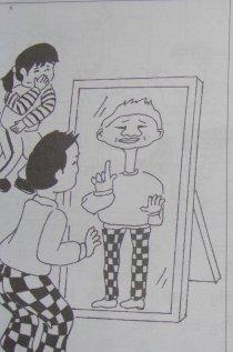 星期天下午,小剛急急忙忙地跑去小紅家。原來,他是要去小紅家照哈哈鏡。