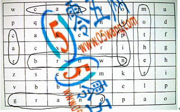 四、請從下面的表格中圈出你所學過的6個單詞。