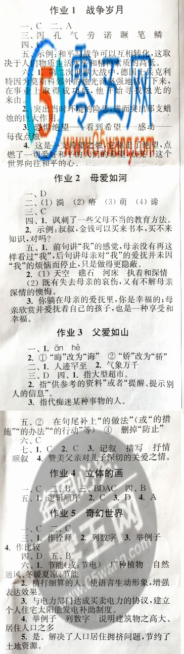 八年級快樂寒假語文作業(yè)1.2.3.4.5答案