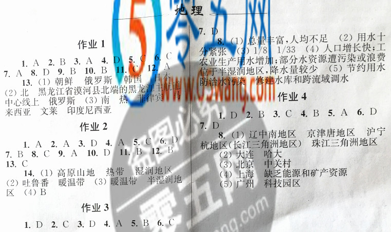 八年級(jí)快樂(lè)寒假地理作業(yè)答案