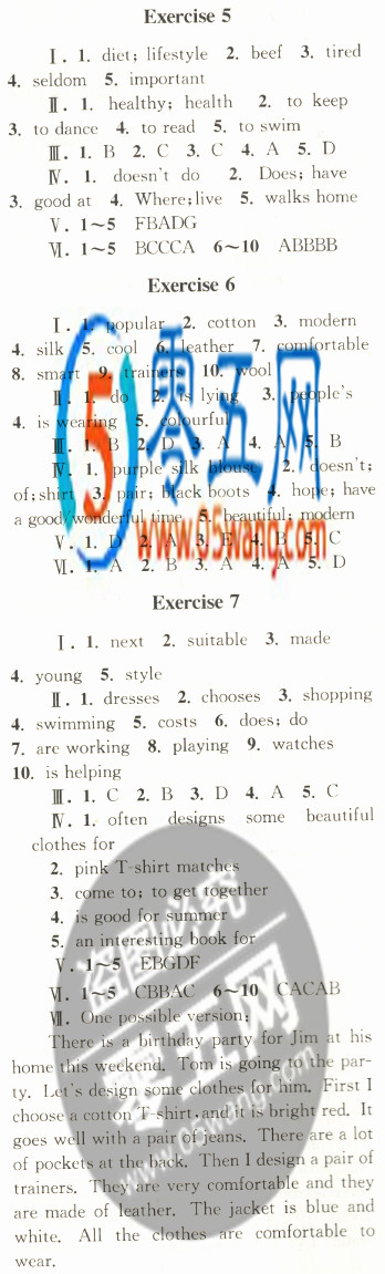七年級快樂寒假英語作業(yè)5.6.7答案