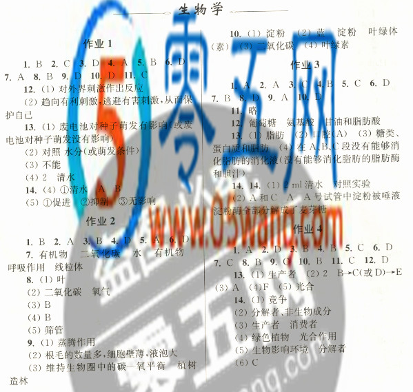 七年級快樂寒假生物學(xué)作業(yè)答案