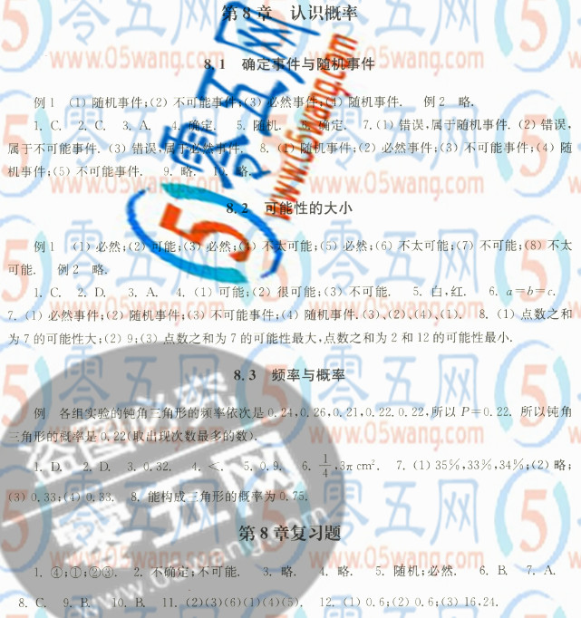 第8章認(rèn)識概率課課練答案