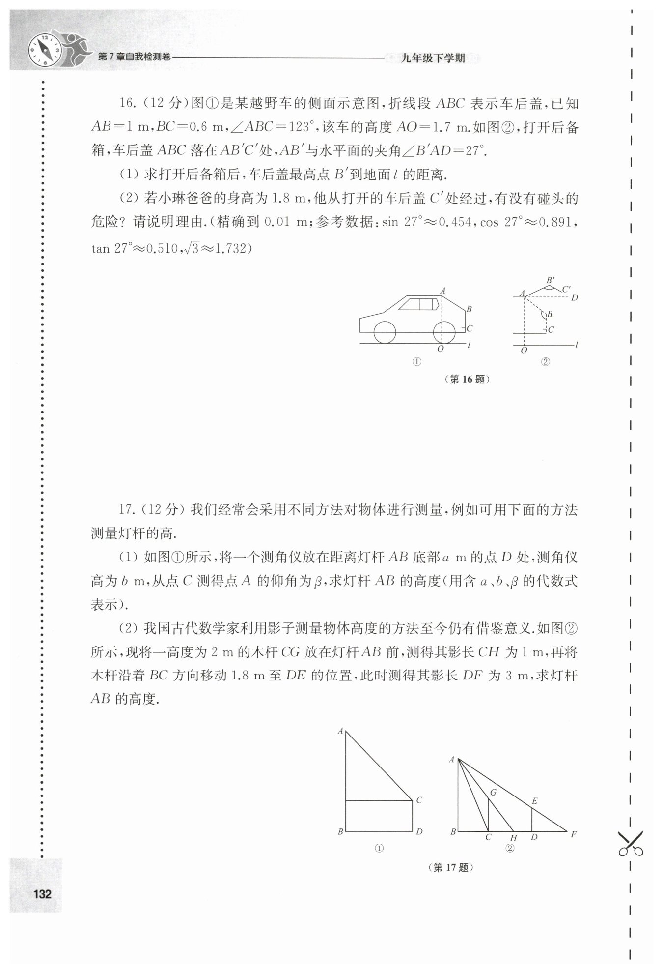 所以?$B'E=AB'sin 27°≈1×0.454=0. 454(\mathrm {m}).$?