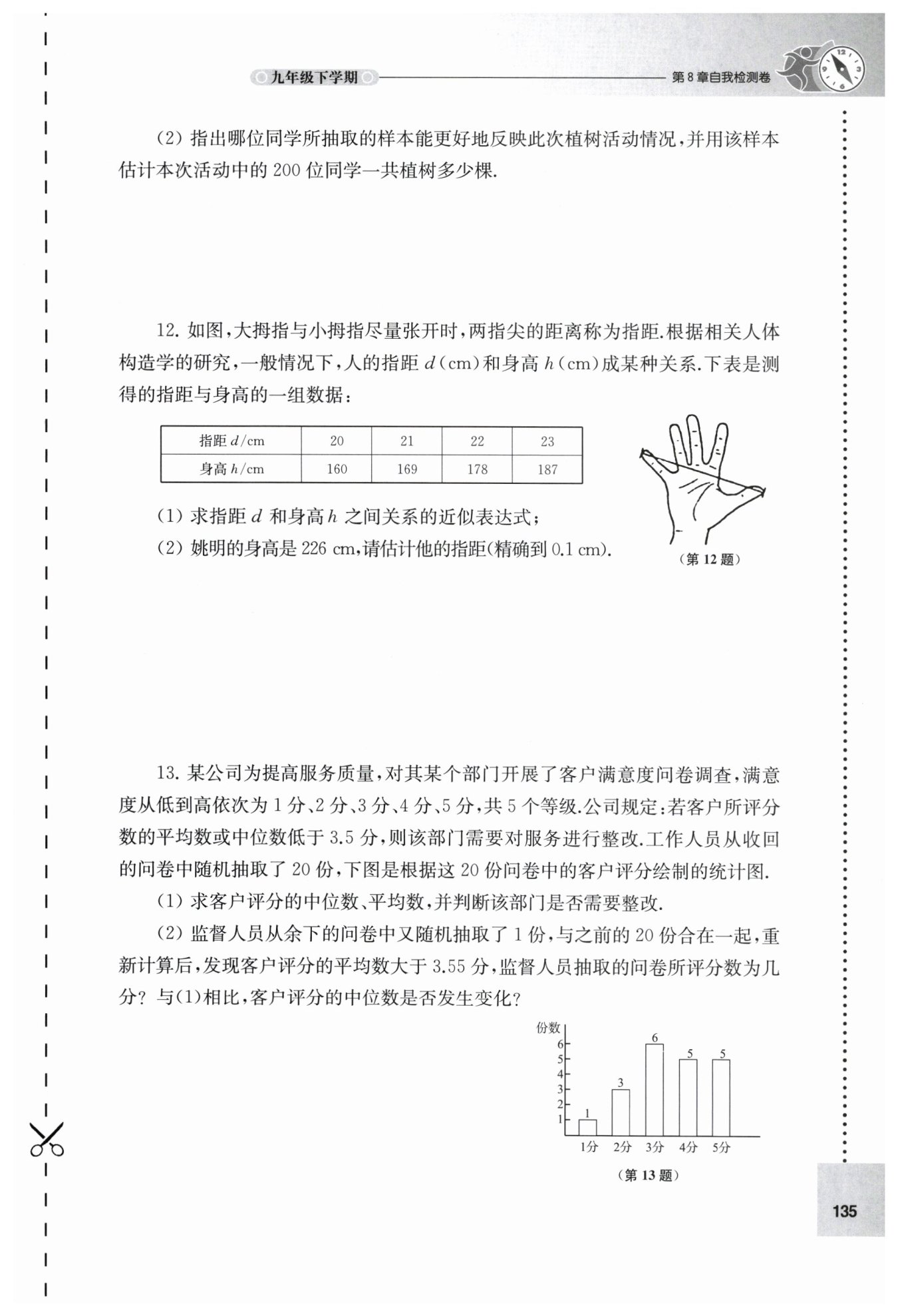 ∴監(jiān)督人員抽取的問(wèn)卷所評(píng)分?jǐn)?shù)為$5$分,