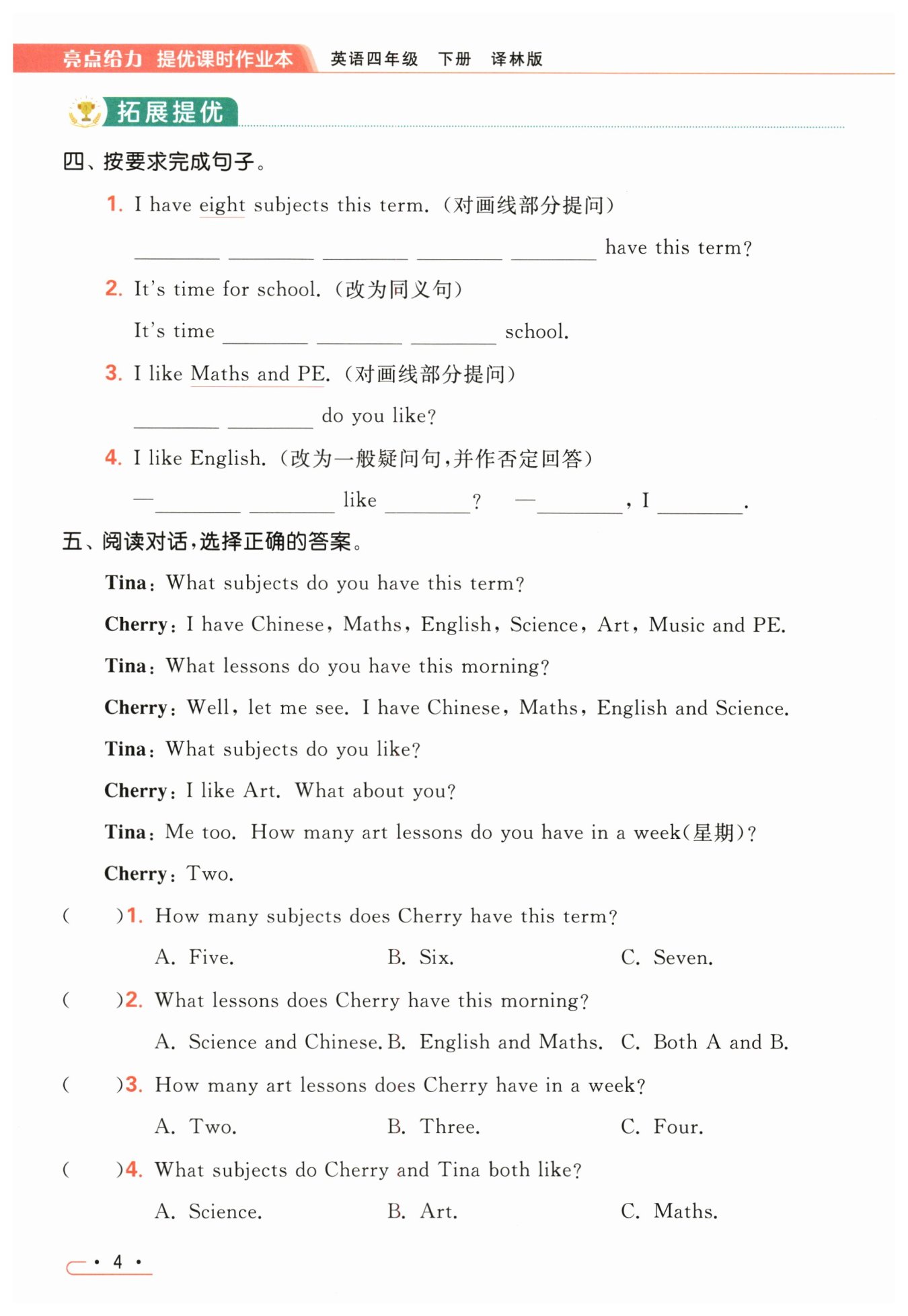 Cherry: Well, let me see. I have Chinese, Maths, English and Science.