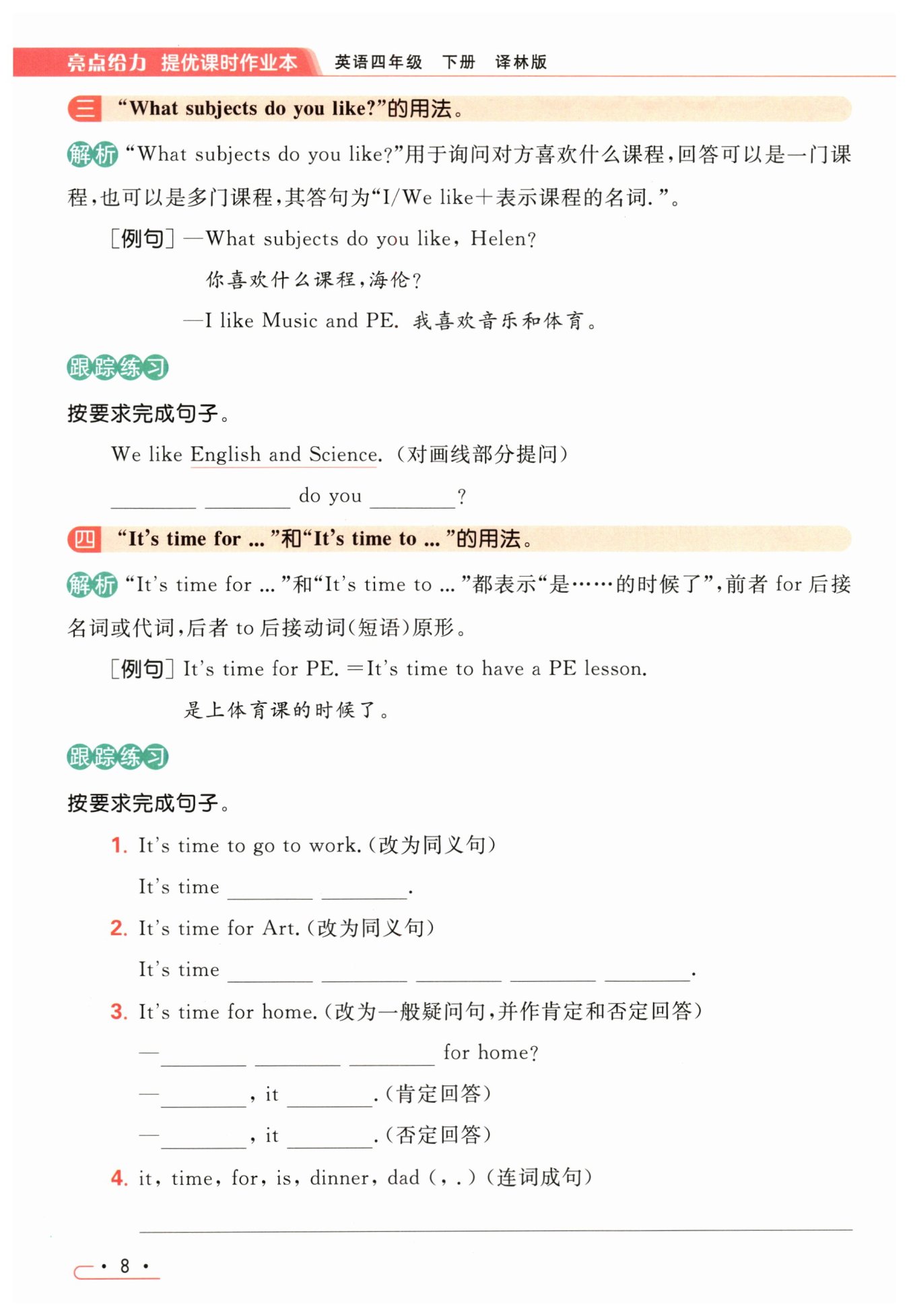 畫線部分意思是英語和科學(xué),可知問的是你們喜歡什么科目,用What subjects提問什么科目,后跟助動詞do,接主語you,再接動詞原形like。