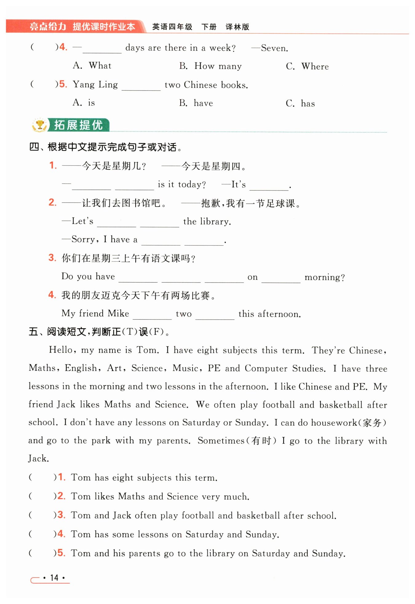 可知,Tom喜歡語文和體育,而不是數(shù)學和科學。故填 F。