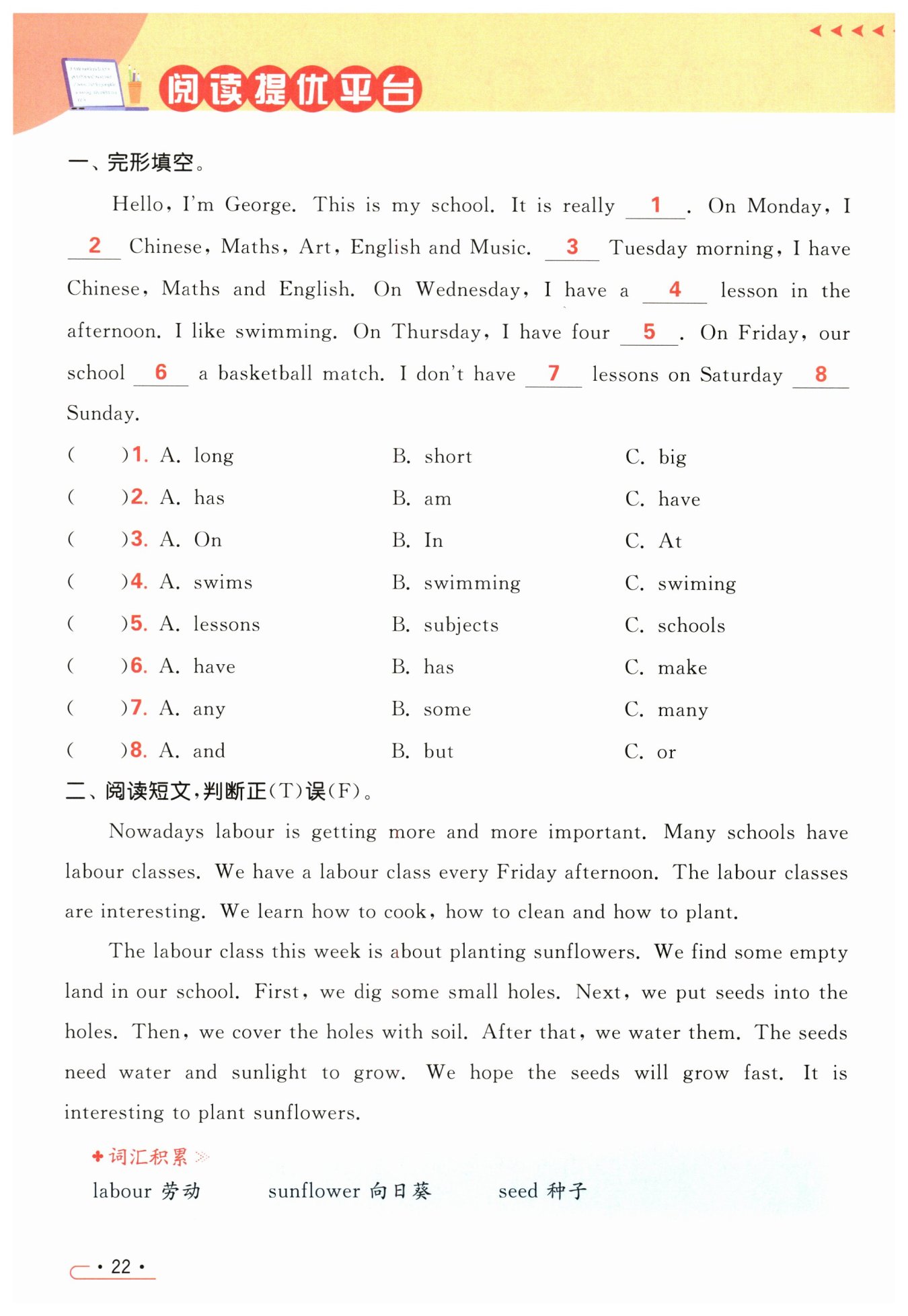 句意:我星期二上午有語文、數(shù)學(xué)和英語。