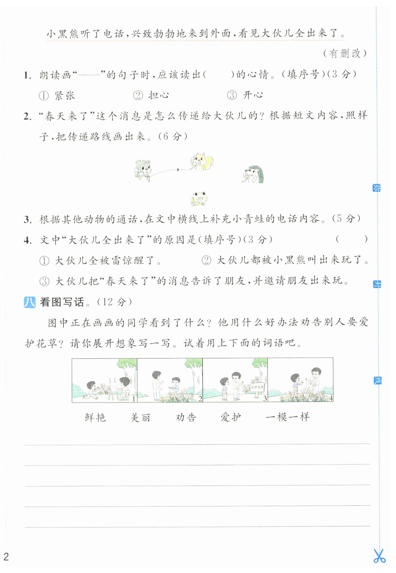 寫著“愛護花草”。小亮勸告小男孩不能隨意采摘鮮花,破壞公園美麗的環(huán)境。最