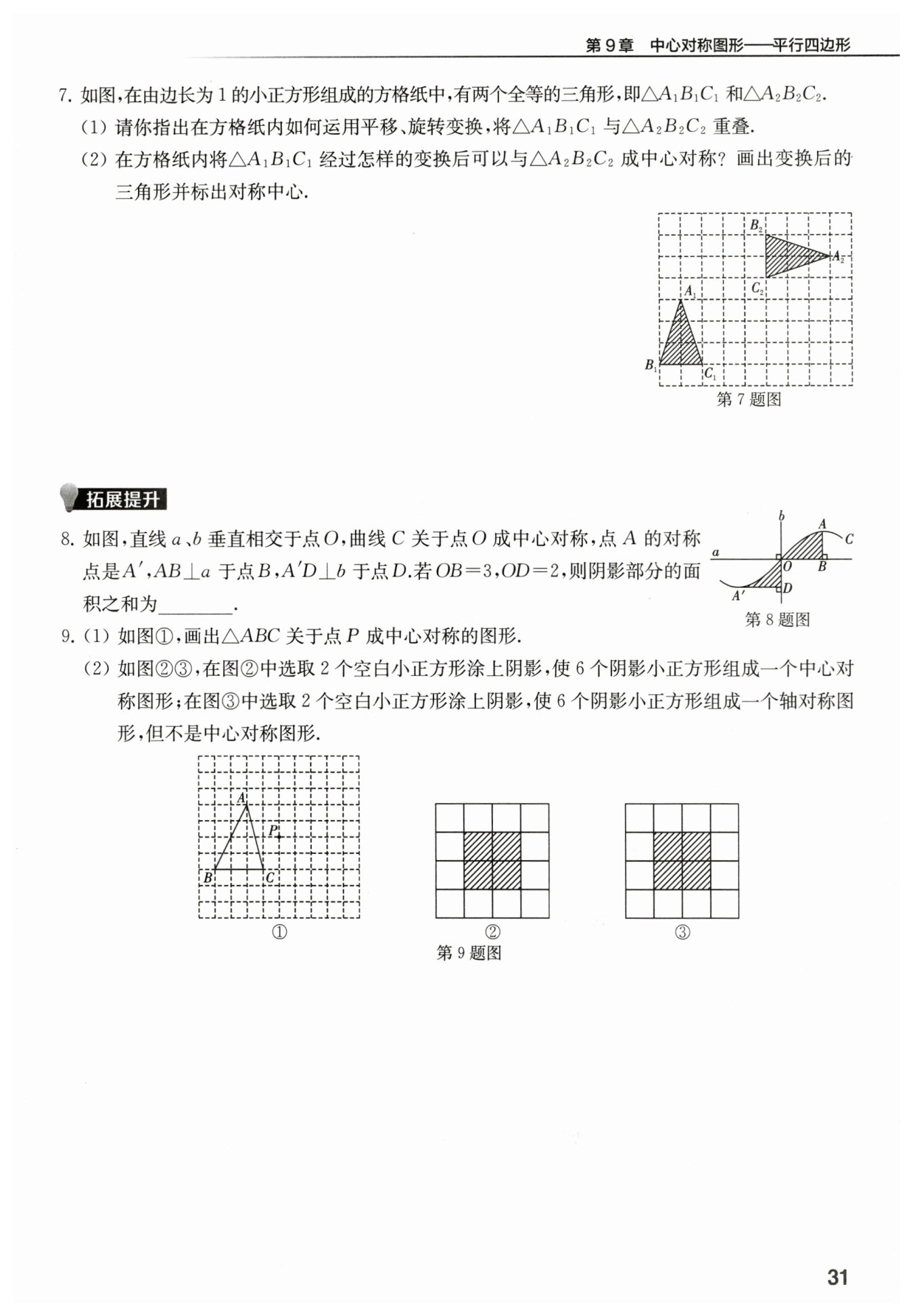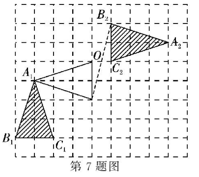 ?$(2) $?將?$△A_1B_1C_1$?繞點(diǎn)?$A_1$?按逆時(shí)針方向旋轉(zhuǎn)?$90°,$?點(diǎn)?$O$?即為對(duì)稱中心。