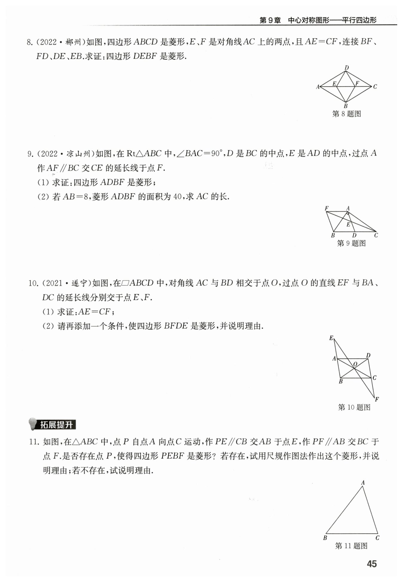 ∴菱形?$ADBF $?的面積?$=△ABC$?的面積?$=40. $?