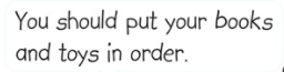 句意:她說:“你應(yīng)該把你的東西放整齊。”