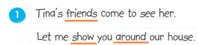 句意:蒂娜的朋友來看她。她帶他們參觀了她的房子。