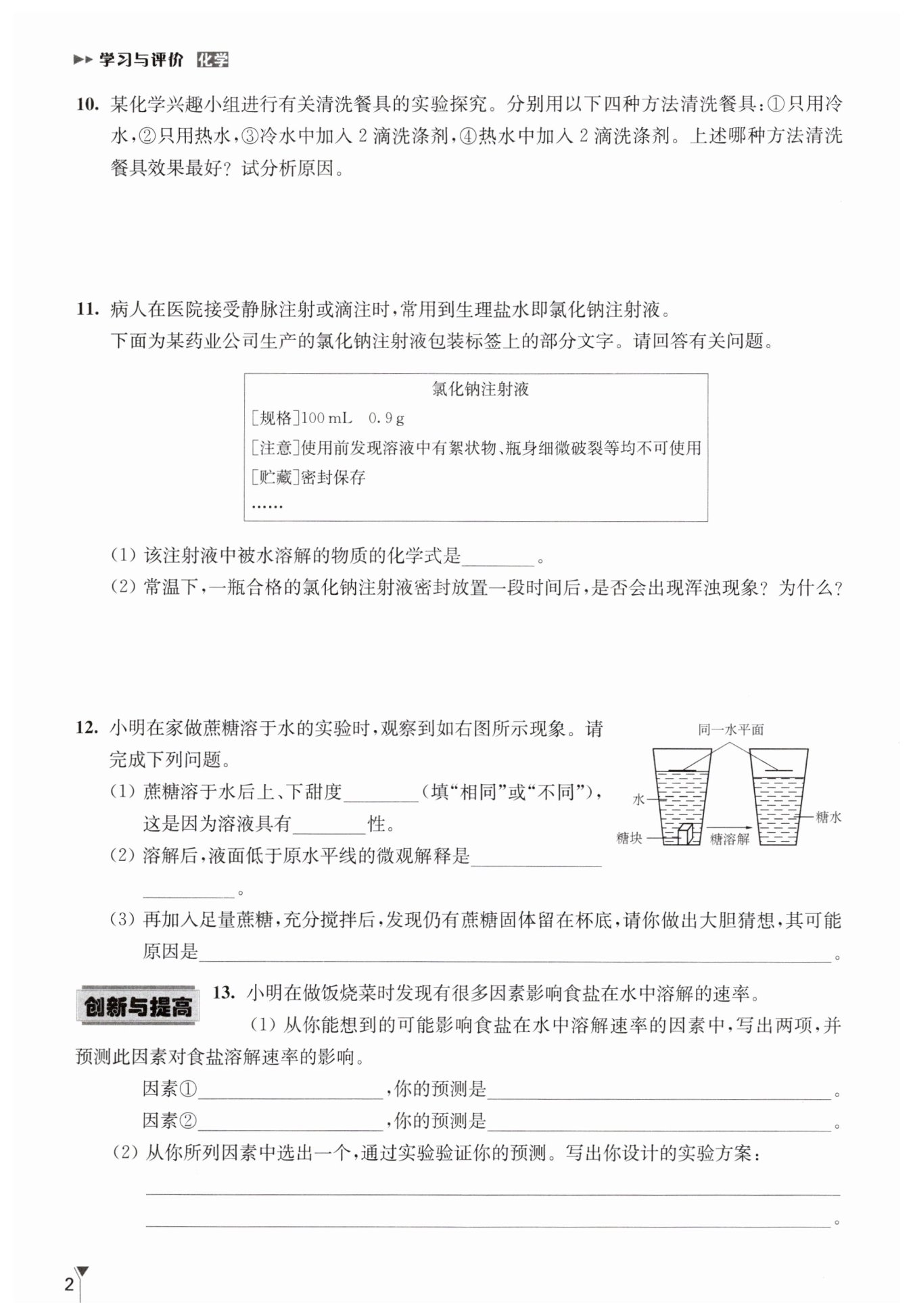 在兩只燒杯中各加50mL水,同時(shí)放入2g 顆粒大小相同的食鹽,在一只燒杯中攪拌,