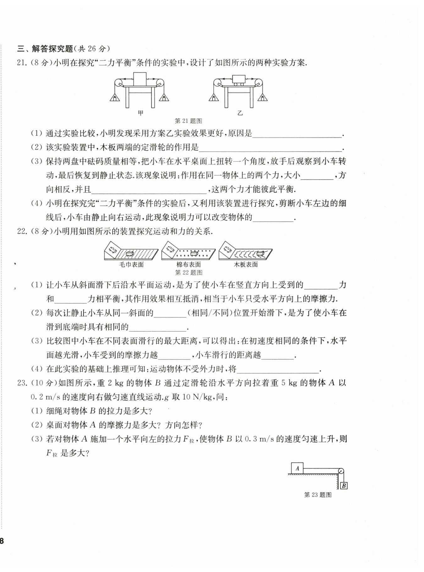 解:?$(1)F=G_B=m_Bg=2\ \mathrm {kg}×10\ \mathrm {N/kg}=20\ \mathrm {N}$?