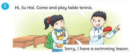 可知蘇海和蘇陽(yáng)有游泳課,即have a swimming lesson。