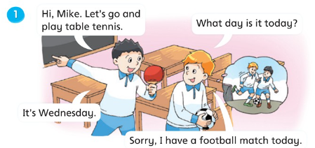 可知今天星期三(Wednesday)。want to do sth.,“想要做某事”。劉濤想要和邁克一起打乒乓球,即table tennis。a football match,一場(chǎng)足球比賽。