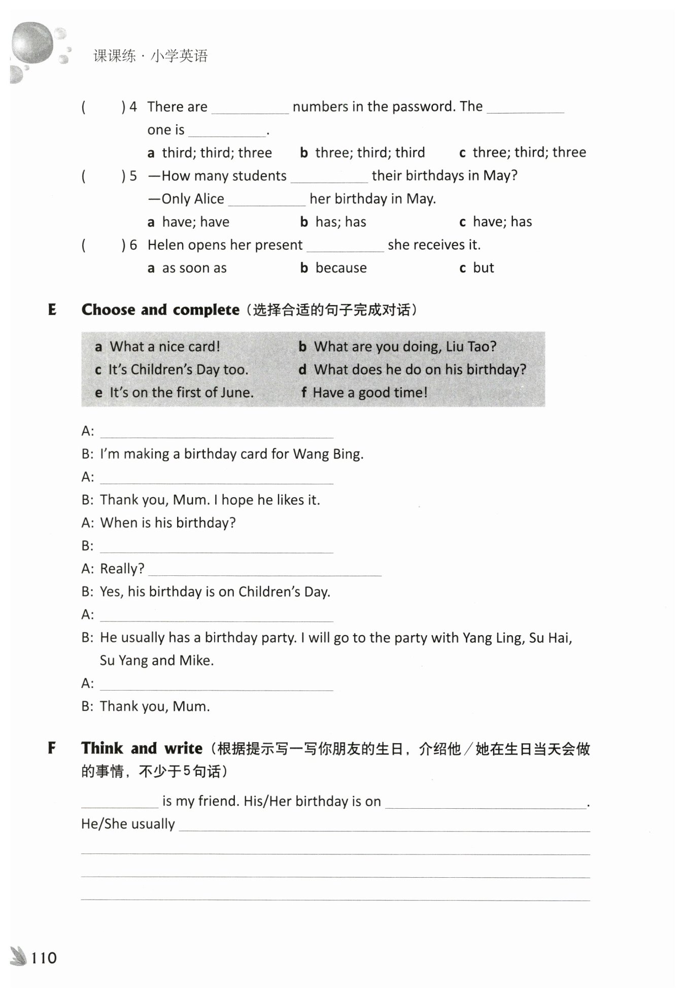Jim is my friend. His/Her birthday is on the first of June. He/She usually has a birthday party at home. Many friends come to his birthday party. They bring a birthday cake and eat the cake together. After that, he plays games with them. They all have a good time.