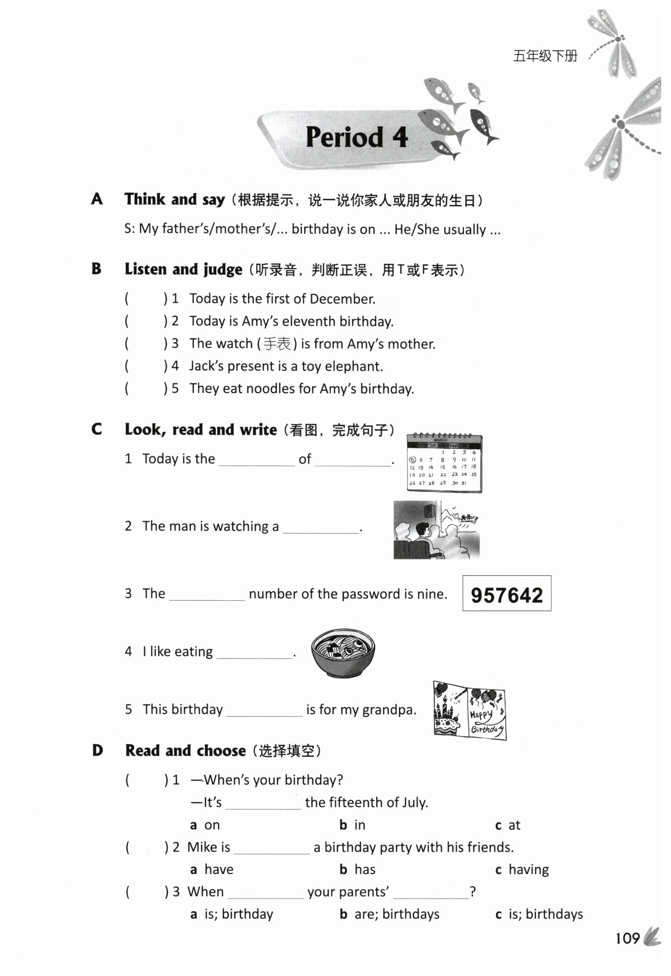 根據(jù)圖片中日歷可知,日期為:3月5日。日期需用序數(shù)詞放于of短語中的前面,故第一空為fifth,第二空為“三月”,對應(yīng)單詞March。
