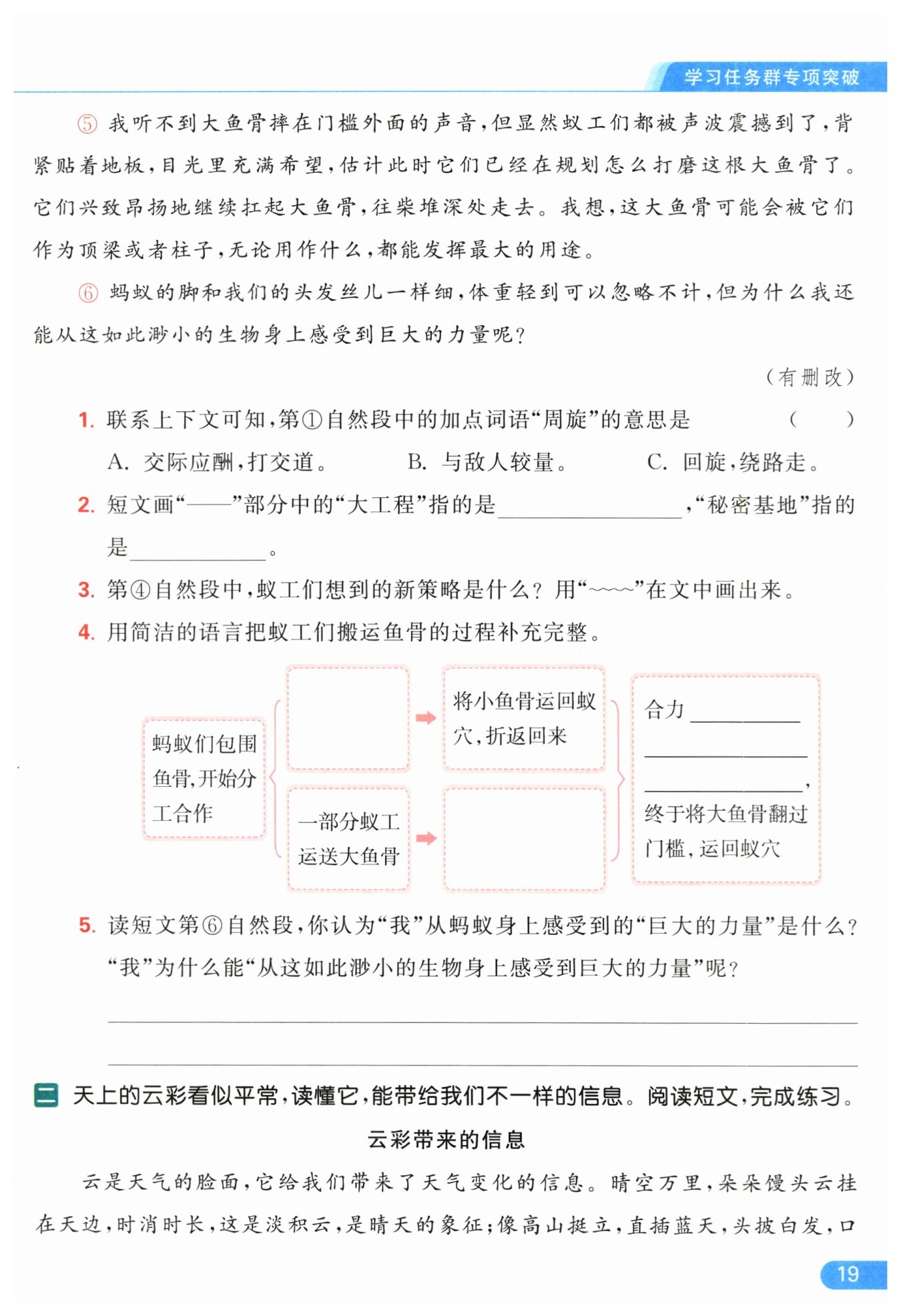 示例:我認為“巨大的力量”指遇到困難不放棄,團結合作的力量。因為蟻工們在門檻