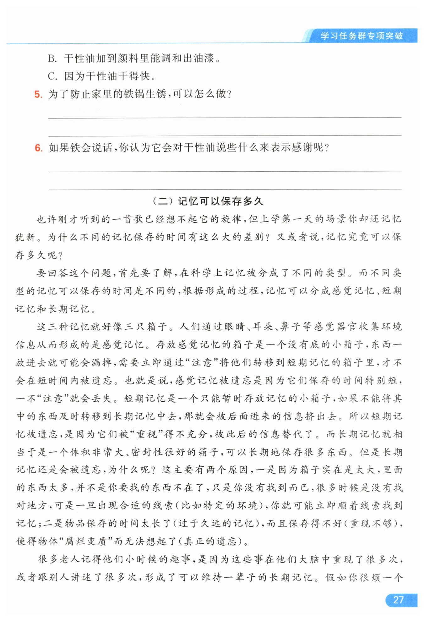 示例:為了防止鐵鍋生銹,可以在使用完鐵鍋后將其洗凈并擦干,使之表面沒有水分。