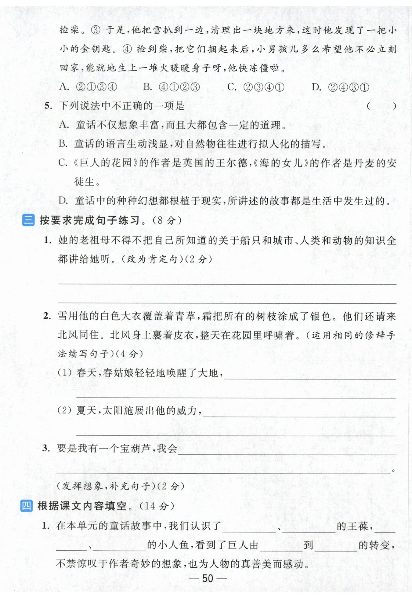 她的老祖母只得把自己所知道的關(guān)于船只和城市、人類和動物的知識全都講給她聽。