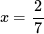 ? $ x=\frac 27$?