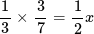 解:?$ \frac 12x=\frac 37×\frac 13$?