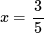 ? $ x=\frac 35$ ?