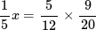 解:?$ \frac 15x=\frac 9{20}×\frac 5{12}$?