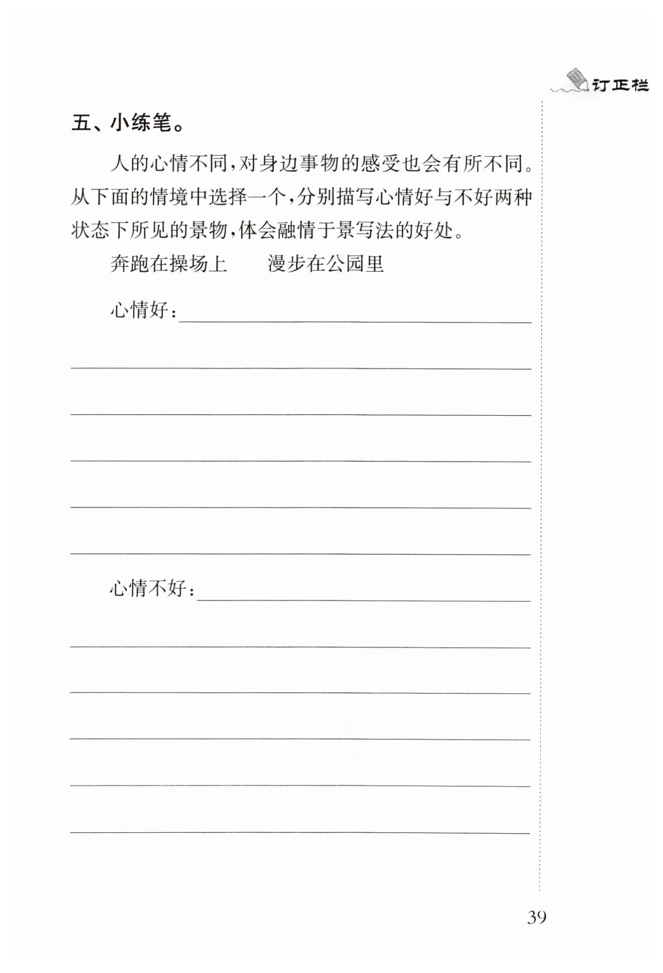 ?這是一道小作文。讓我們采用寓情于景的手法,心情好的時(shí)候,看到的景物也應(yīng)該是美麗的;心情不好的時(shí)候,景物應(yīng)該讓人有種凄涼之感。描寫(xiě)的時(shí)候可以適當(dāng)運(yùn)用一些修辭手法,讓文字更具感染力。
