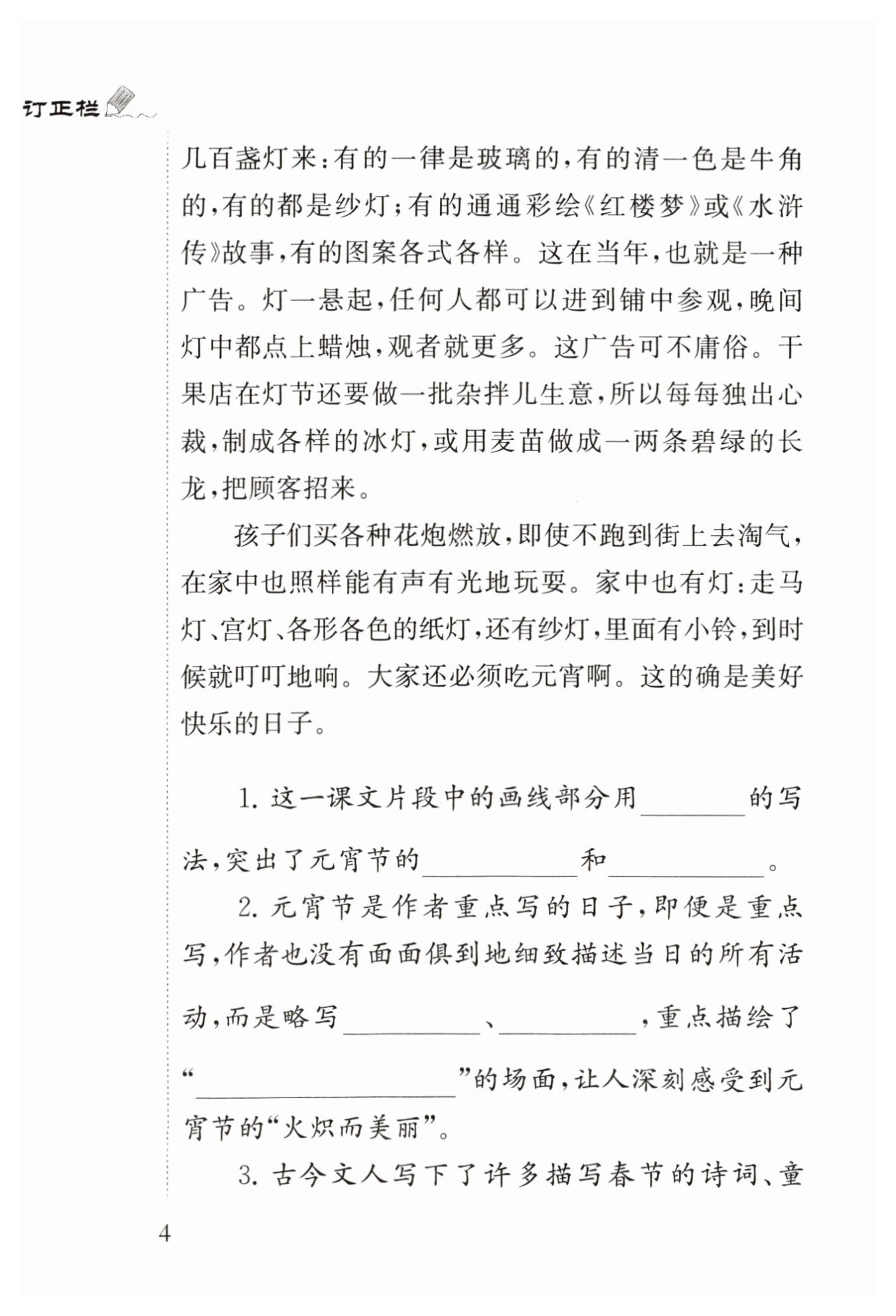 ★ 從“家家門前貼著鮮紅的春聯(lián),人們穿著新衣裳,可是它還不夠美”與“元宵節(jié),處處懸燈結(jié)彩,整條大街像是辦喜事,火熾而美麗”可知,作者將除夕的紅春聯(lián)、新衣裳不夠美與元宵處處懸燈結(jié)彩的火熾而美麗進(jìn)行對(duì)比,突出了元宵節(jié)的燈光美。