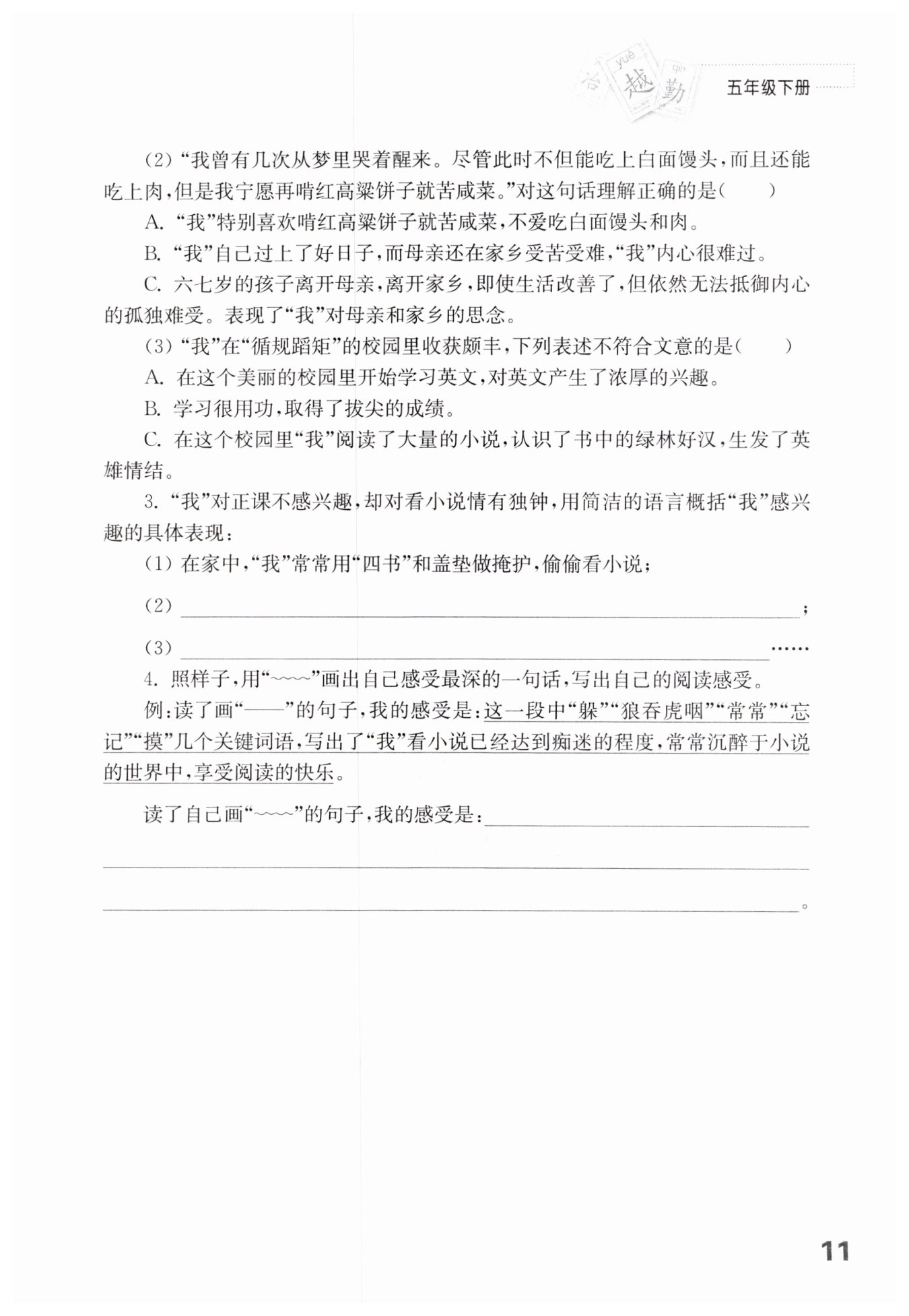 感受:通過“我”和叔父間關(guān)于看閑書的博弈,寫出了“我”對小說的癡迷與喜愛